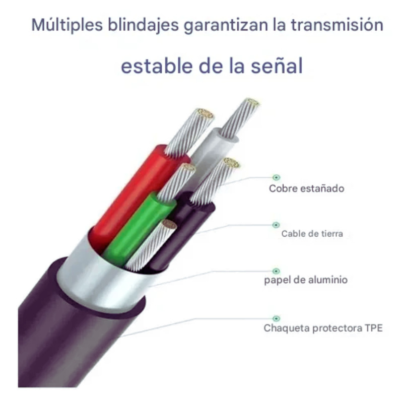 Sus múltiples blindajes y conductores de cobre estañado reducen interferencias y aseguran una señal fuerte y continua, incluso en ambientes exigentes.