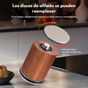 Solo apoyá el cuchillo en la base y deslizá el rodillo hacia adelante y atrás. No requiere corriente ni mantenimiento complejo. Compacto, portable y silencioso.