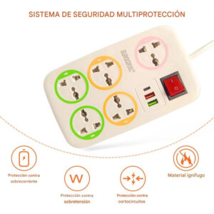 ⚡🔒 Cuenta con interruptor de encendido y apagado para controlar todos los aparatos de manera rápida y sencilla. Su sistema de multiprotección protege contra sobrecarga, sobrecorriente, sobretensión y cortocircuitos, asegurando seguridad en el hogar o la oficina.