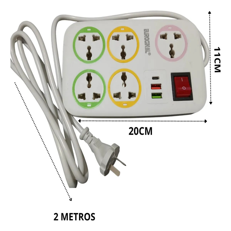 este prolongador eléctrico mide 20 × 11 × 3.5 cm y cuenta con base antideslizante, ideal para colocarlo en cualquier espacio de tu hogar u oficina sin moverse, manteniendo tus dispositivos organizados y seguros.