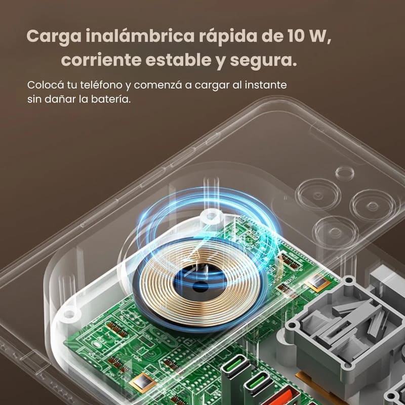 – Puertos USB y Type-C para carga simultánea