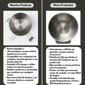 Balanza digital plegable con pantalla LCD, diseñada para mediciones precisas en cocinas profesionales y comercios. Ofrece múltiples unidades de medida, función de tara y un formato compacto ideal para optimizar espacio en almacenamiento y despacho.