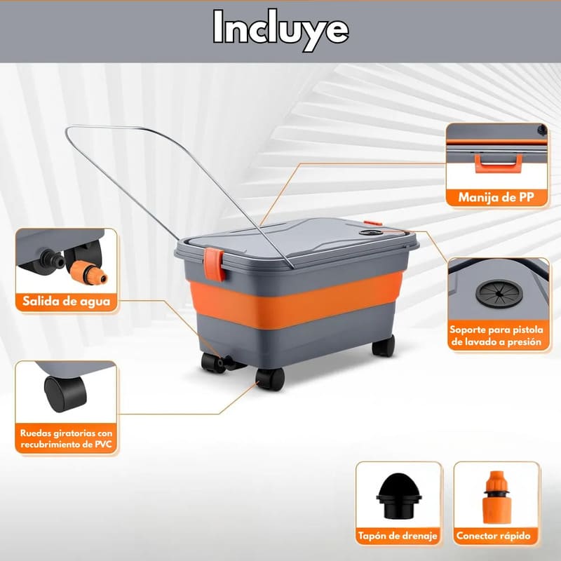 - Producto multiuso: limpieza, camping, lavadoras a presión inalámbricas, mascotas, bebidas y lavandería portátil.