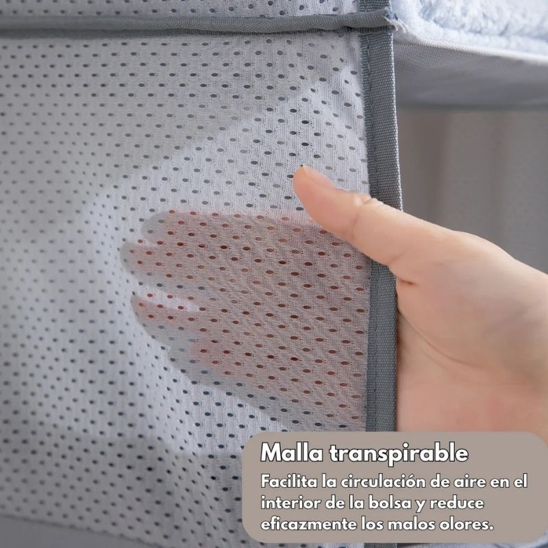 Ambos modelos ofrecen el mismo diseño plegable, compartimento inferior con cierre y materiales resistentes, adaptándose a distintos tipos de valija y duración de viaje.