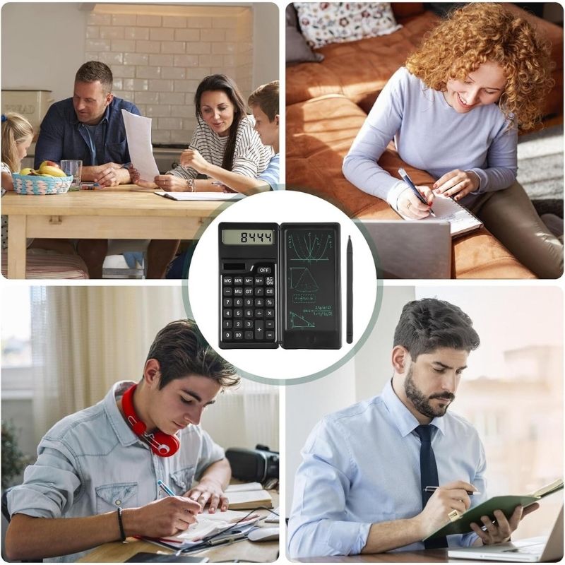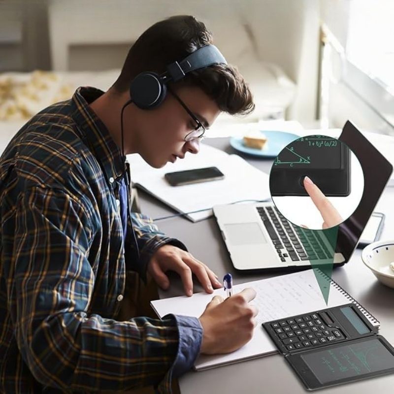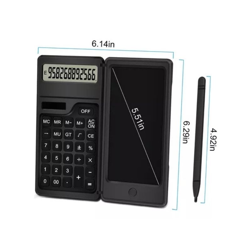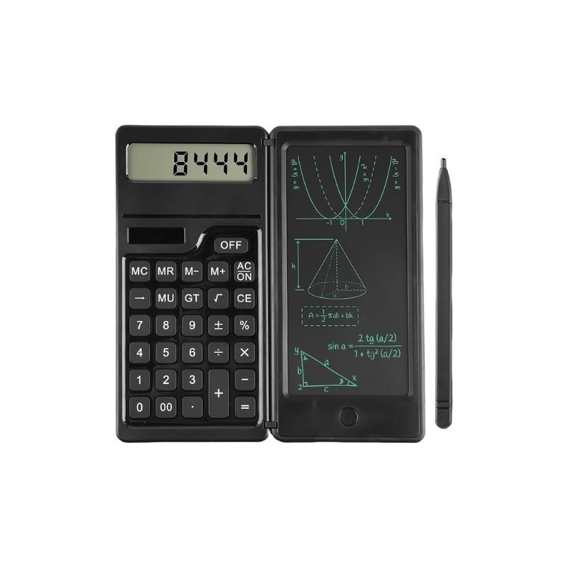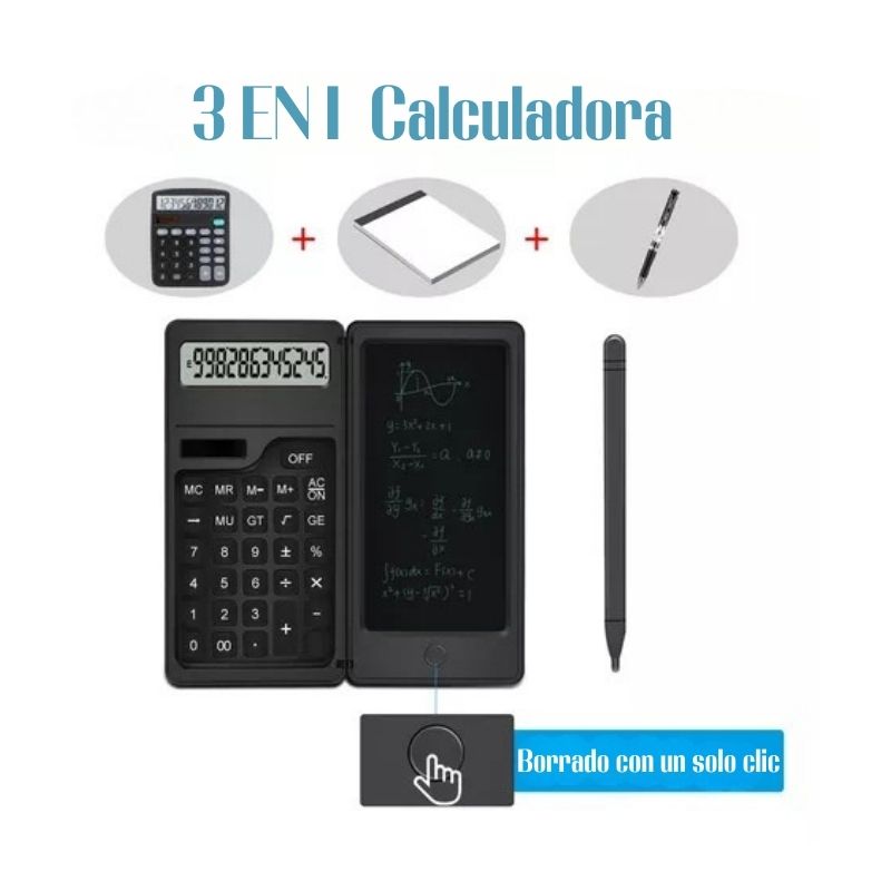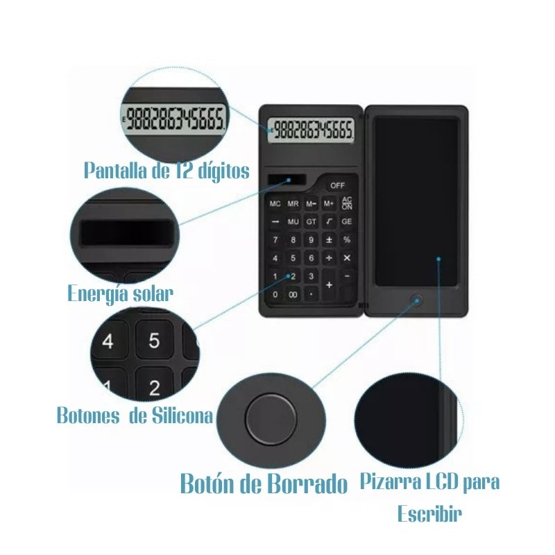una calculadora científica de 12 dígitos con una patalla digital LCD integrada para que tomes notas,