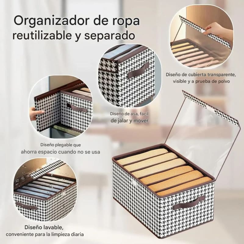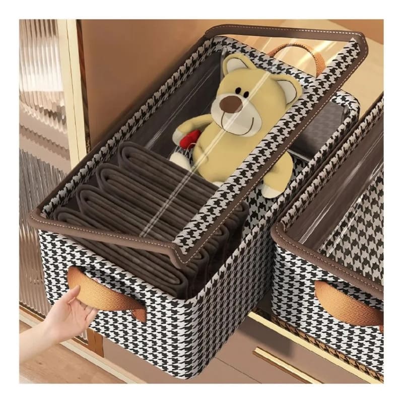 Guardá tu ropa de forma ordenada y siempre a mano con este canasto organizador con tapa transparente. Perfecto para placares y estantes, mantiene todo visible y protegido al mismo tiempo.