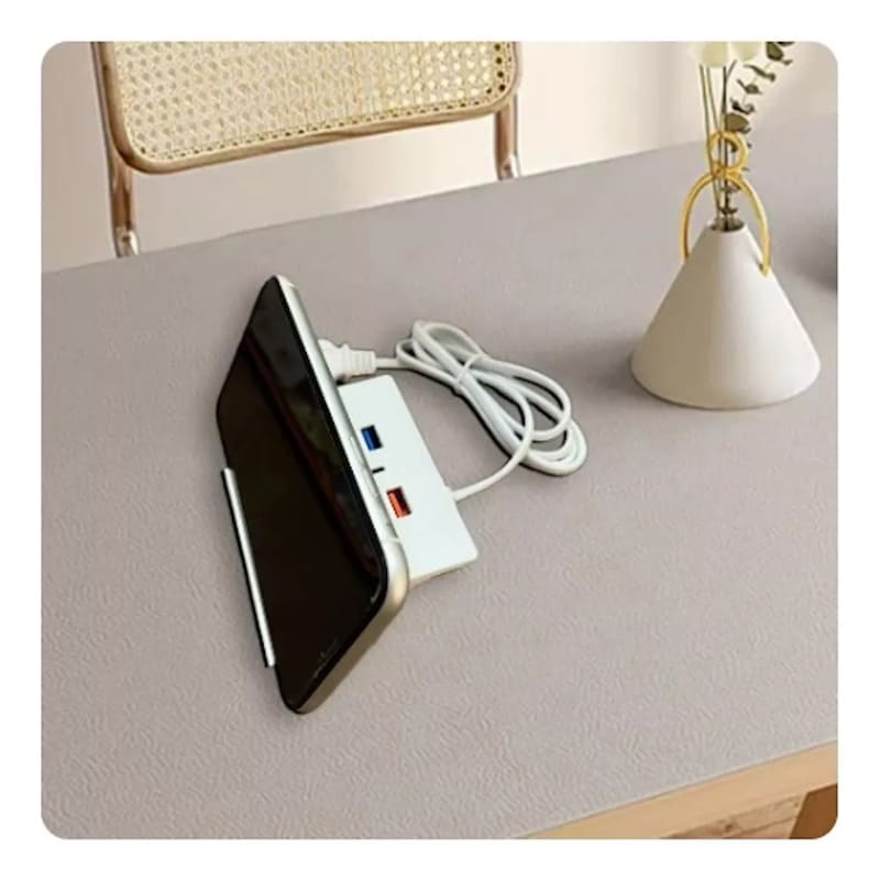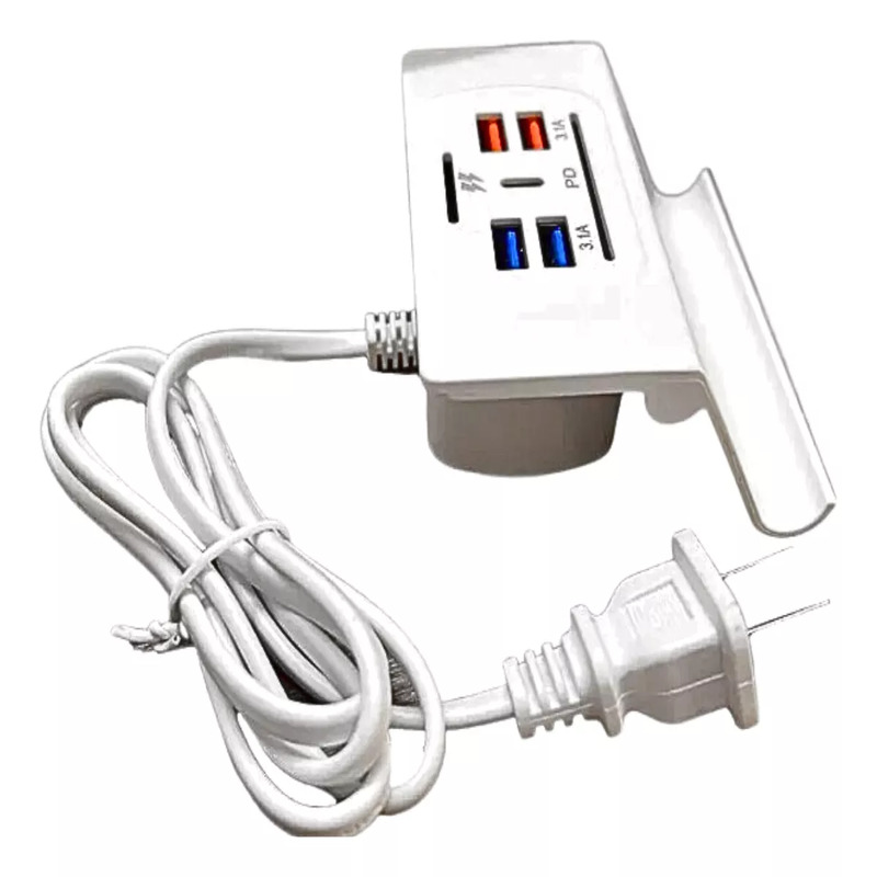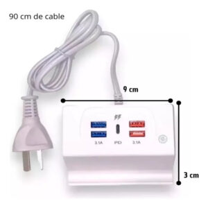 Perfecto para casa, oficina o viajes. Su cable de 90 cm te da libertad de movimiento y su tamaño compacto lo hace ideal para cualquier espacio. ¡Una solución práctica para cargar todos tus dispositivos en un solo lugar!