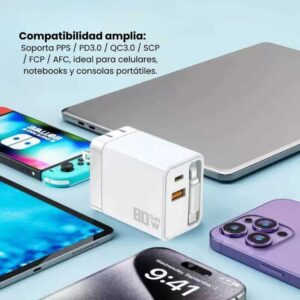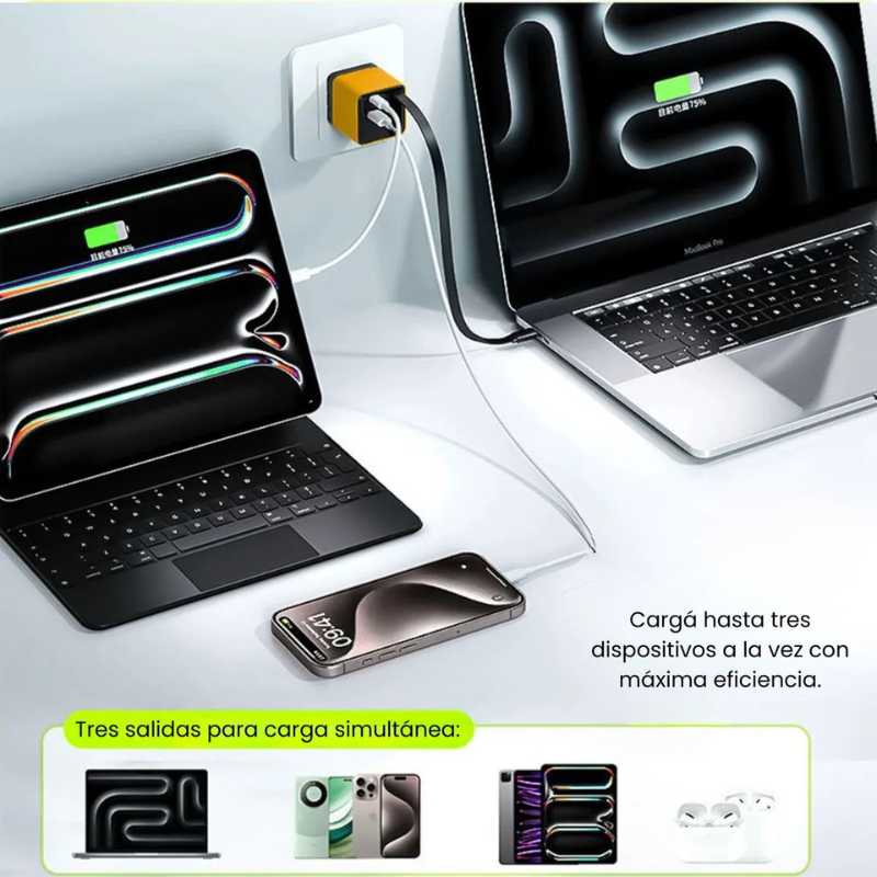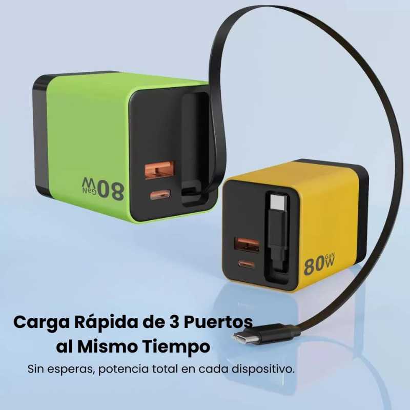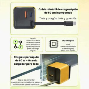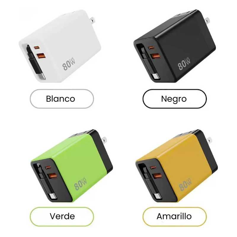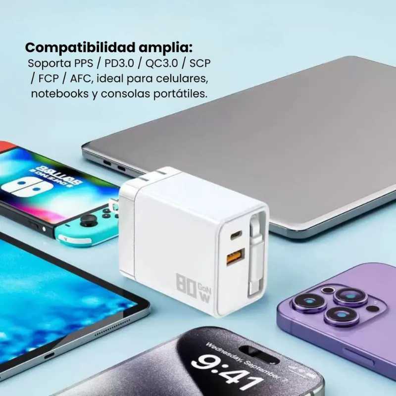 - Potencia rápida de 80W para notebooks, tablets y teléfonos