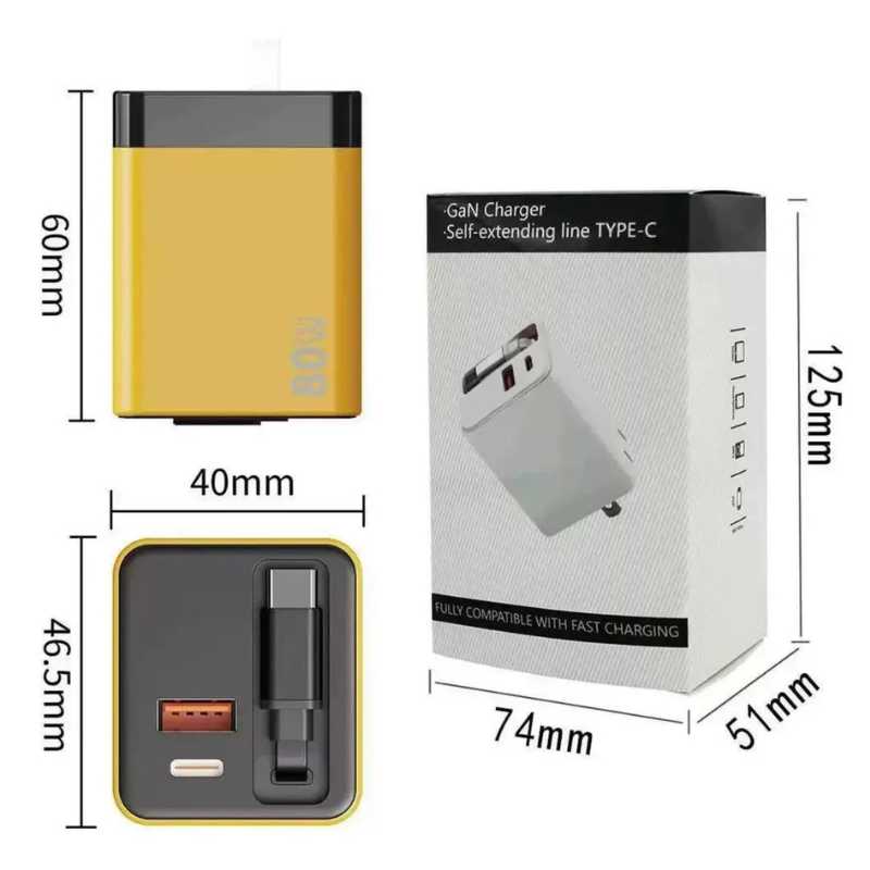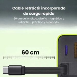 - Triple salida: USB-C, USB-A y cable Type-C retráctil