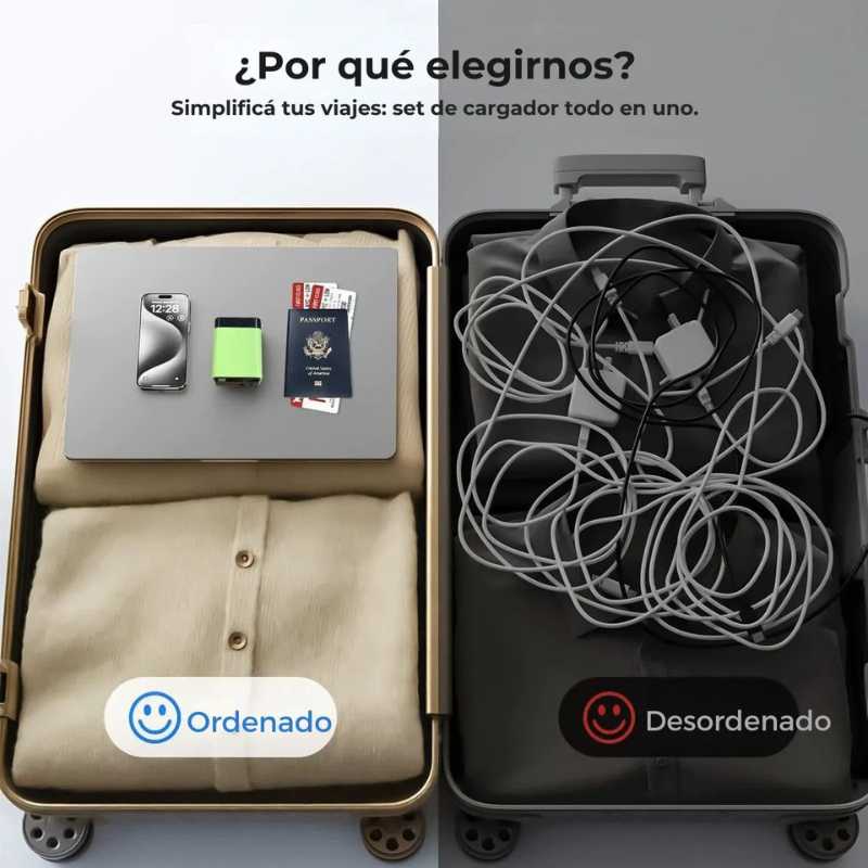 - Reemplaza múltiples cargadores en un solo dispositivo
