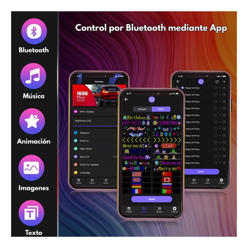 Con tecnología Bluetooth Low Energy 4.0, podés vincular el panel a la app “Gotus Display” (disponible para Android e iOS).