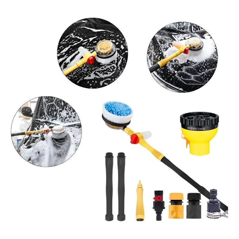 Con un largo total de 58 cm, cepillo de felpa de 26 cm y varilla desmontable de 42 cm, este cepillo giratorio ofrece el equilibrio perfecto entre alcance y control. Se conecta directamente a la manguera doméstica, sin necesidad de electricidad ni bombas de presión, brindando una limpieza potente, ecológica y de bajo consumo energético. Ideal para mantener tu vehículo o superficies impecables con el mínimo esfuerzo.