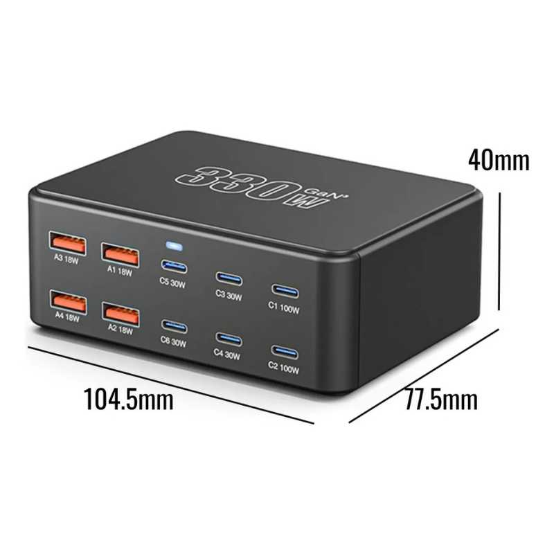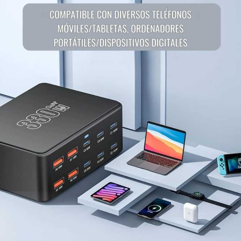 - Potencia total de 330W para carga simultánea de múltiples dispositivos