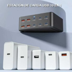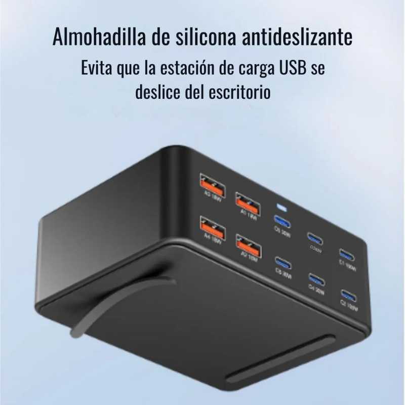 - 6 puertos USB-C (2 de hasta 100W PD + 4 de 30W) y 4 USB-A QC 3.0