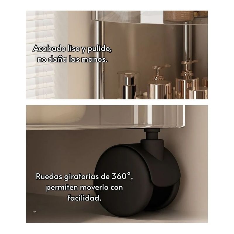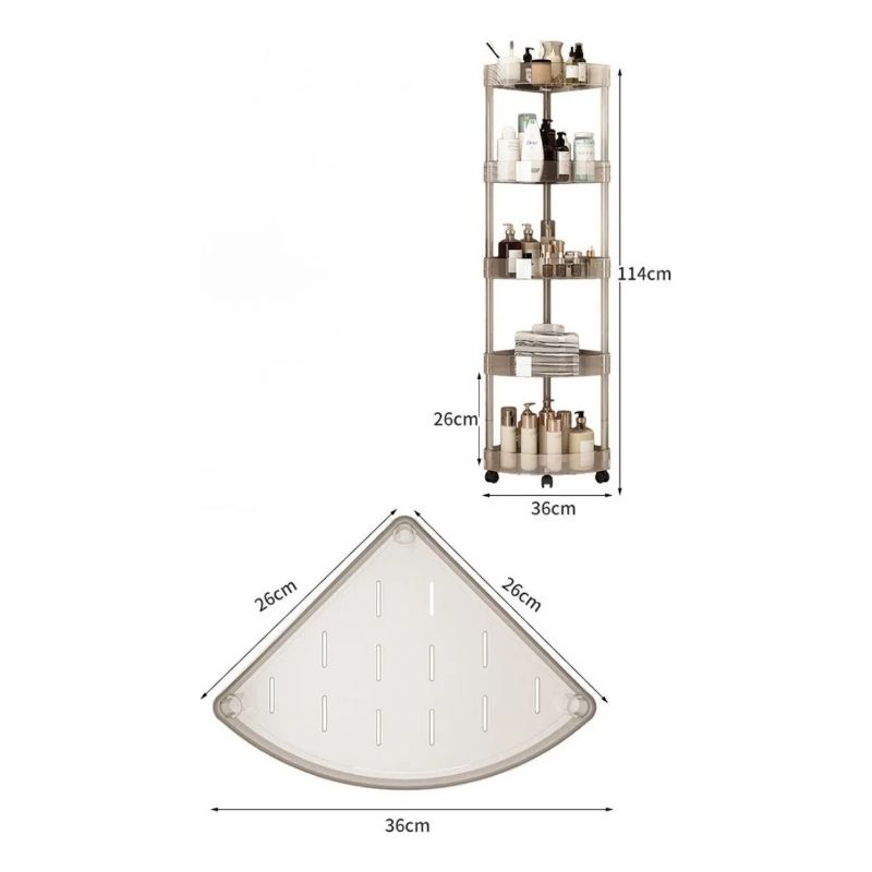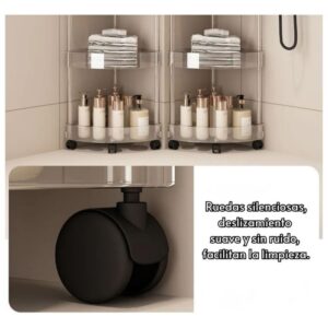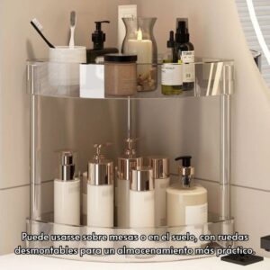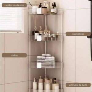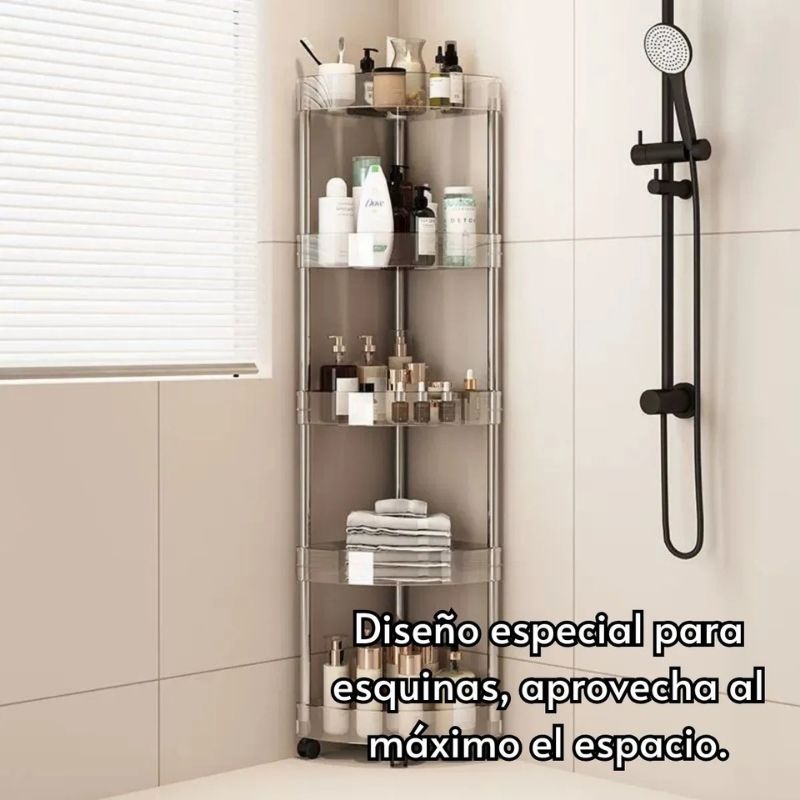 Maximizá el espacio con estilo gracias al estante esquinero acrílico transparente de 5 niveles, una solución moderna y funcional para organizar tus objetos con elegancia. Su diseño claro, estable y con ruedas lo convierte en el complemento ideal para baños, cocinas o dormitorios.