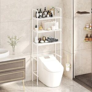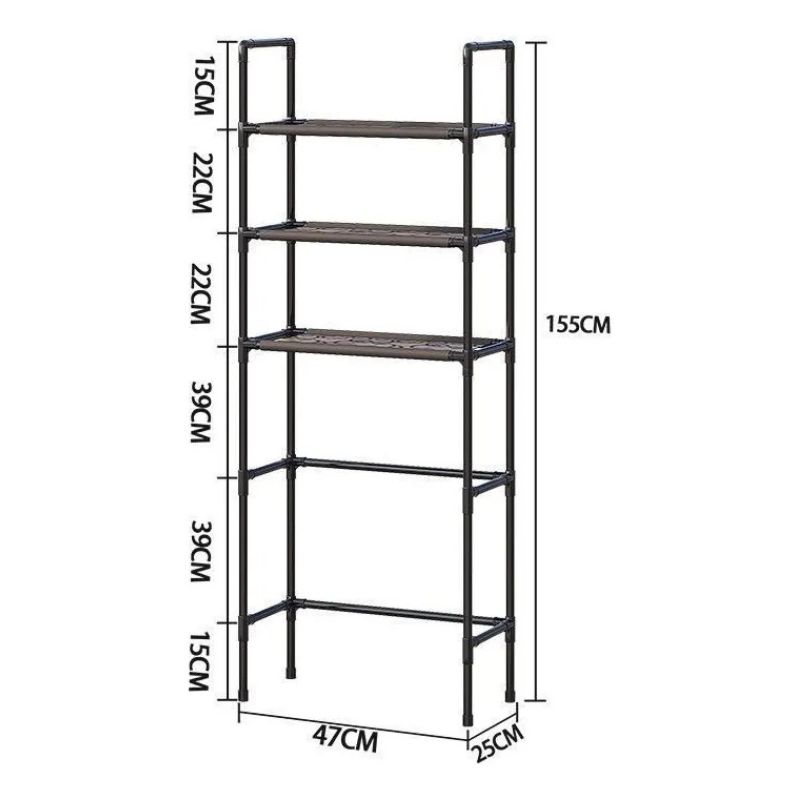 Con 155 cm de alto, 47 cm de ancho y 25 cm de profundidad, este estante aprovecha al máximo el espacio vertical sin ocupar lugar extra. Su espacio libre inferior de 62 cm encaja perfectamente sobre el inodoro, mientras que sus niveles de 39 cm y 22 cm ofrecen la altura justa para organizar toallas, frascos o productos de higiene con total comodidad.
