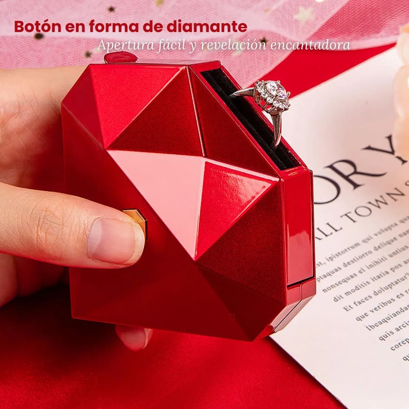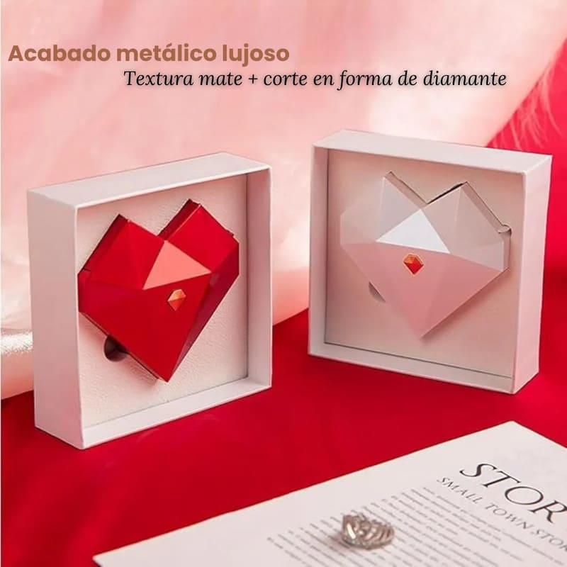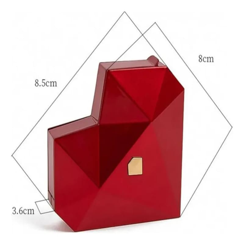 Estuche compacto en forma de corazón diseñado para presentación profesional de anillos y alianzas. Fabricado en plástico resistente con interior de felpa suave para protección y realce de la joya. Ideal para joyerías, eventos y packaging premium.