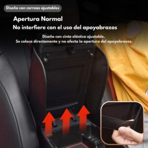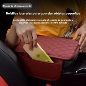 Con una superficie acolchada de 45 × 31 cm y bolsillos laterales de 22 × 12 cm, ofrece el equilibrio perfecto entre comodidad y organización sin ocupar espacio extra en tu auto.