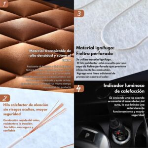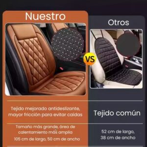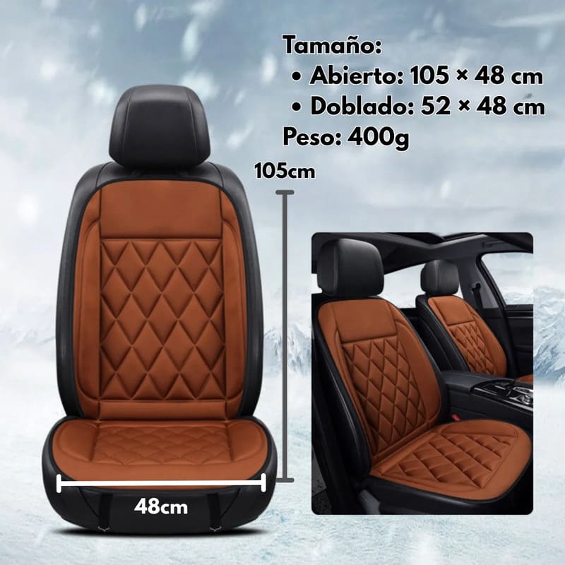 Con un diseño práctico de 105×48 cm abierto y 52×48 cm doblado, esta funda calefactora se adapta a cualquier asiento sin ocupar espacio.