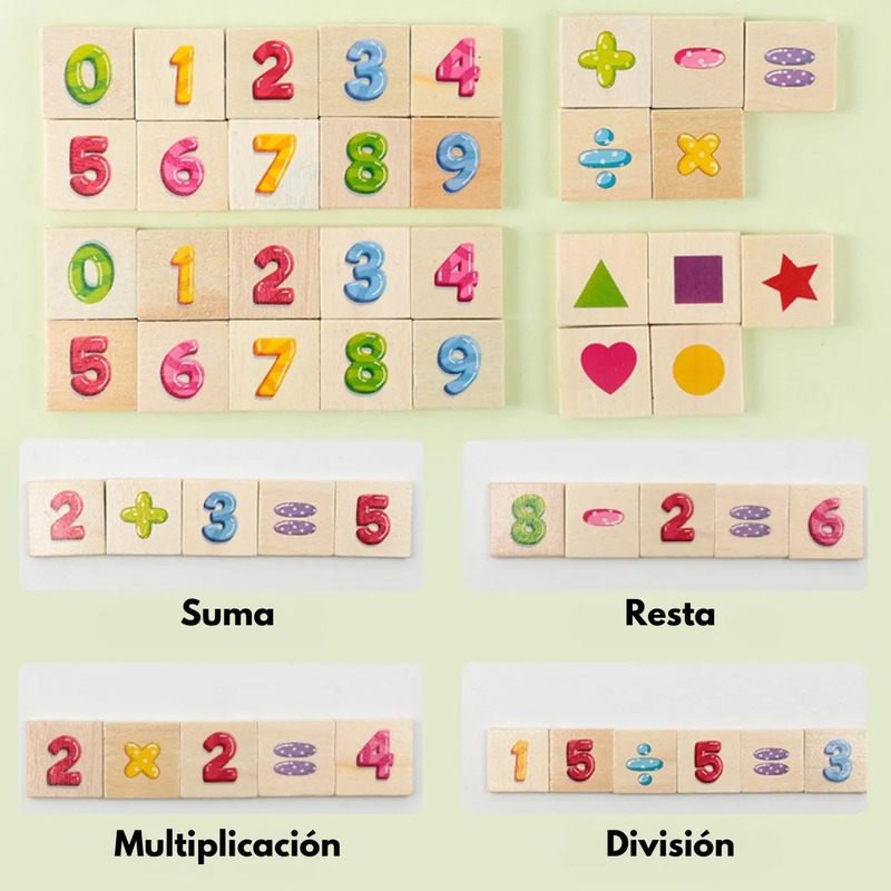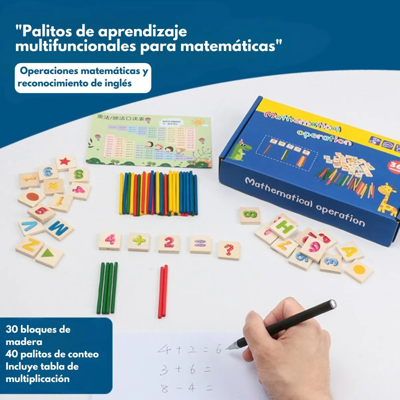 Los palitos de conteo y las figuras de colores brillantes ayudan a visualizar operaciones y fomentar la comprensión matemática.
