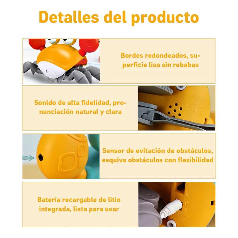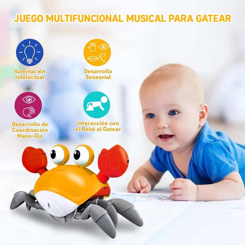 Juguete sensorial interactivo con movimiento automático, luces y melodías, diseñado para estimular el desarrollo temprano. Fabricado en ABS resistente y seguro, recargable por USB y pensado para un uso intensivo en tiendas, regalos infantiles y canales mayoristas.