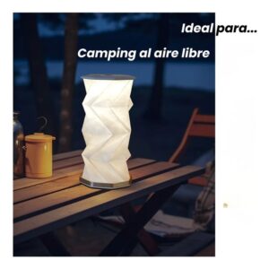 Lámpara decorativa plegable con estructura de papel ecológico y cuerpo ABS, equipada con control táctil y batería recargable. Un dispositivo funcional y portátil, ideal para distribuidores que buscan ofrecer iluminación moderna, eficiente y versátil para uso residencial o comercial.