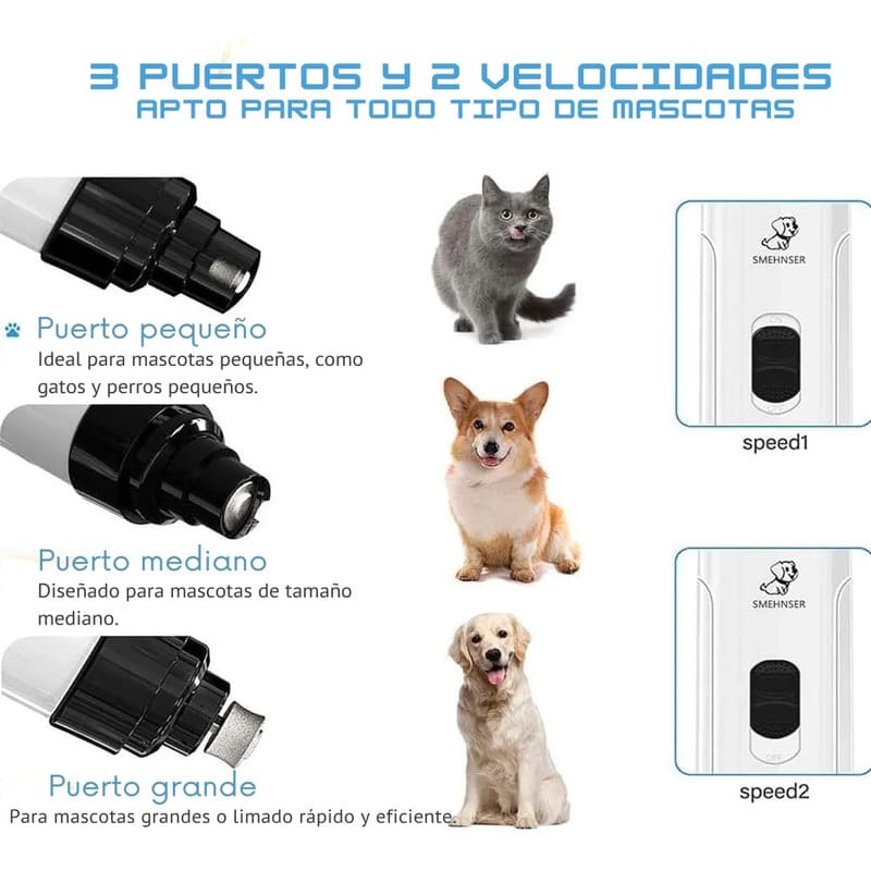 - 3 niveles de limado ajustables, aptos para mascotas pequeñas, medianas y grandes.
