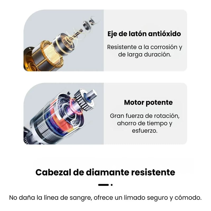 - Sistema de limado eléctrico, más seguro y controlado que el corte tradicional.