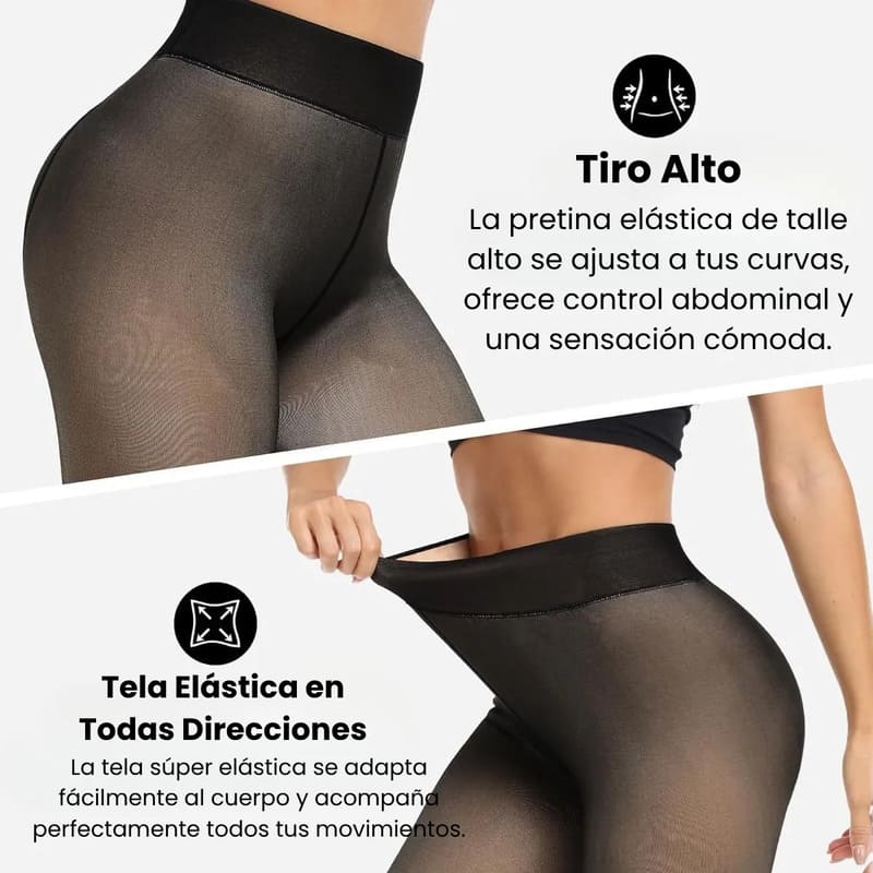 Estas medias térmicas efecto piel combinan elegancia y confort gracias a su interior afelpado y su tejido elástico de alto rendimiento.