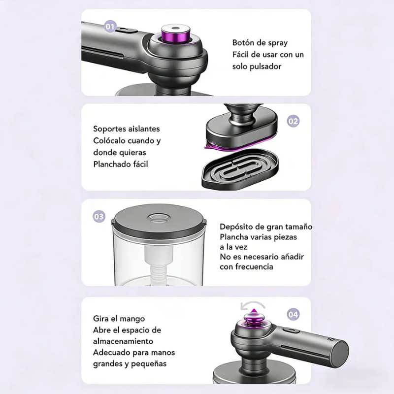 - Producto 2 en 1: plancha seca y vaporizador, mayor valor percibido.
