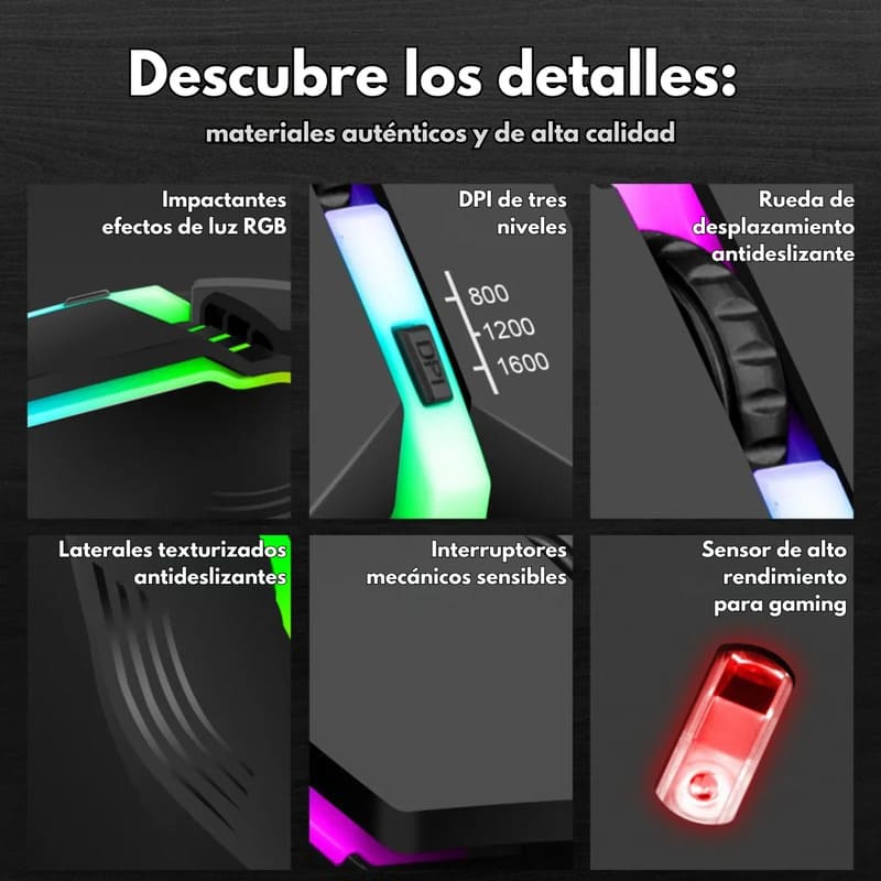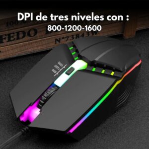 Cambiá entre 3 niveles de DPI (800 / 1200 / 1600) con un clic para adaptar la sensibilidad a cada juego o tarea.