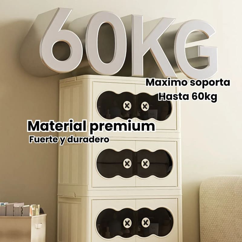 Su estructura modular plegable permite armarlo y desarmarlo en minutos, optimizando el espacio y adaptándose a tus necesidades de almacenamiento.