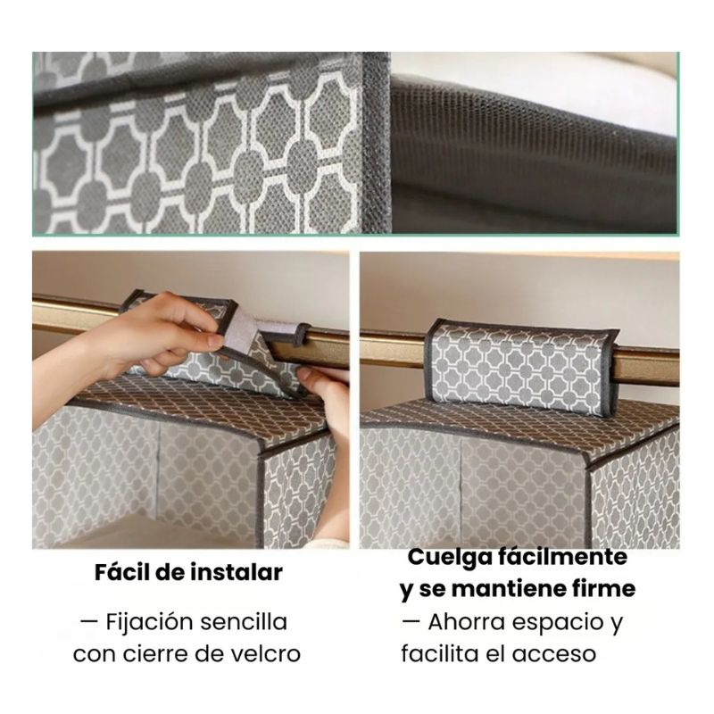 Con 70 cm de alto, 15 cm de ancho y 30 cm de profundidad, este organizador colgante aprovecha cada rincón del placard. Compacto pero sorprendentemente espacioso, te permite ordenar más en menos lugar y mantener todo siempre a mano. Ideal para sumar orden sin ocupar espacio en el piso.