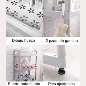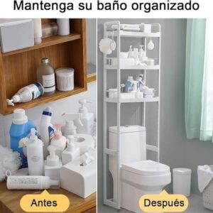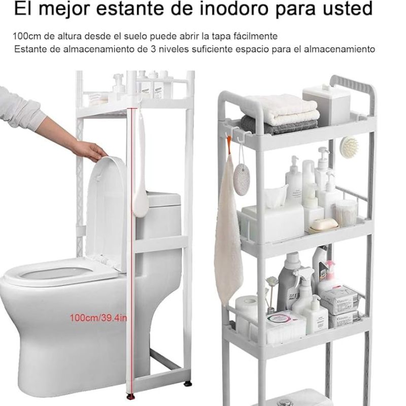 Este organizador de baño sobre inodoro está diseñado para brindarte practicidad y seguridad en cada detalle: sus estantes calados permiten un drenaje rápido, evitando acumulación de agua; cuenta con bordes altos en cada nivel para mantener tus objetos en su lugar sin riesgo de caídas, y además incluye 2 ganchos adicionales ideales para colgar toallas, esponjas o accesorios de baño.