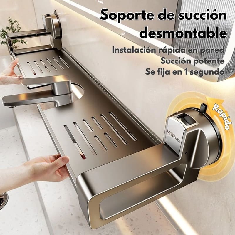 Mantené tu cocina o baño impecables con este organizador sobre grifo desmontable con ventosa potente. Su diseño moderno y funcional combina metal resistente con plástico ABS reforzado, ofreciendo orden, durabilidad y estilo sin necesidad de perforar.