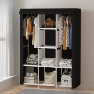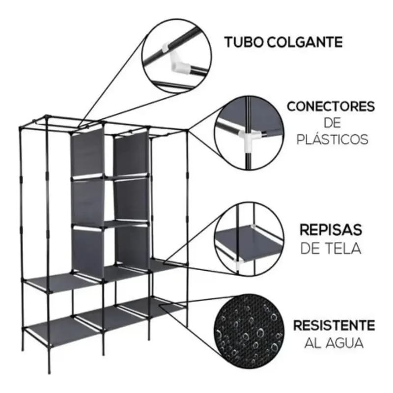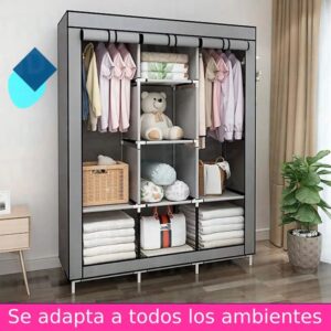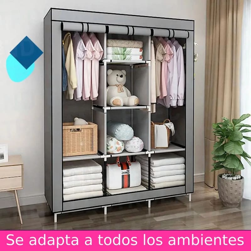 Armario portátil de alta capacidad, diseñado para brindar una solución de guardado eficiente, liviana y fácil de transportar. Ideal para comercialización mayorista en categorías de hogar, organización y soluciones temporales de almacenamiento.