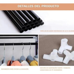• 8 estantes + 2 barrales para colgado de prendas