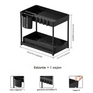 Incluye taza colgante y 4 ganchos móviles para utensilios, cepillos o accesorios. Aprovechá cada rincón y mantené todo organizado.