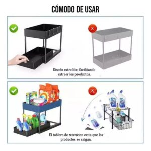 Perfecto para cocina, baño, lavandería o escritorio. Guarda desde condimentos y frascos hasta productos de limpieza o papelería. ¡Un solo estante, mil usos!