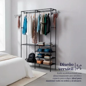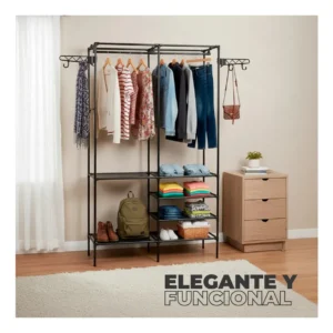 - Incluye ganchos laterales para bolsos y accesorios