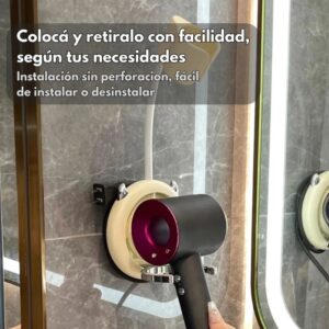Simplificá tu rutina con este soporte para secador de pelo manos libres, ajustable en 360°, impermeable y sin necesidad de taladro. Su ventosa de alta adherencia garantiza una sujeción firme en cualquier superficie lisa, brindándote comodidad, orden y estilo en tu baño.