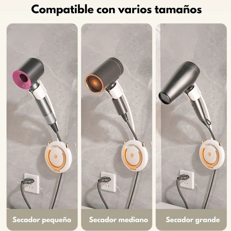 Evitá enredos y mantené el espacio siempre ordenado. Su base práctica incluye un organizador para guardar el cable del secador de forma limpia y funcional.
