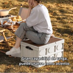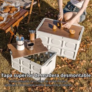 La tapa desmontable de madera resistente puede utilizarse como tabla de cortar, mesa auxiliar o superficie de apoyo. Ideal para camping, picnic o el hogar.