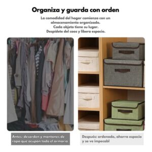 Cada canasto combina practicidad y estética, ideal para armarios, dormitorios o estanterías. Gracias a su estructura plegable, podés armarlos o guardarlos fácilmente cuando no estén en uso.