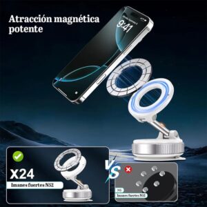 - Compatible con teléfonos magnéticos y no magnéticos (incluye anillo metálico)