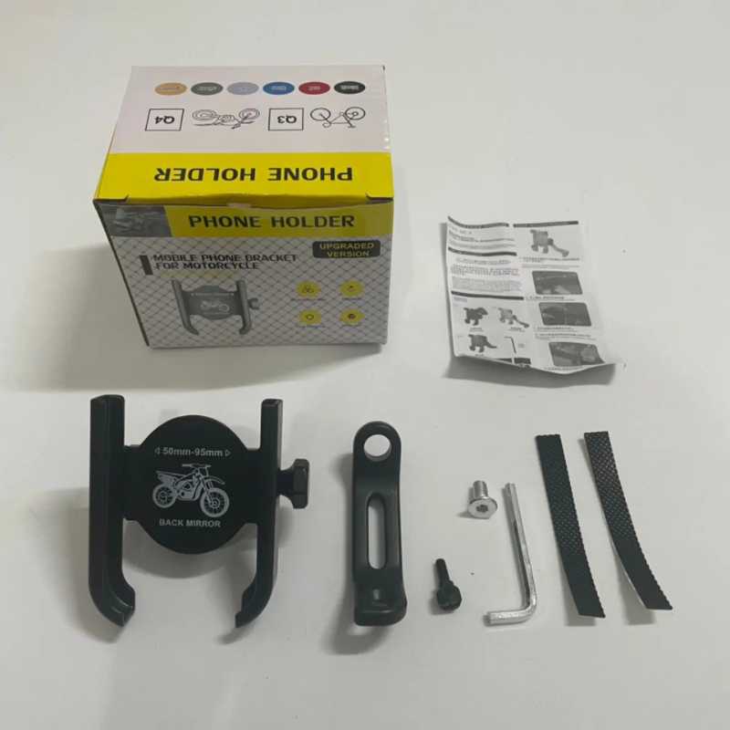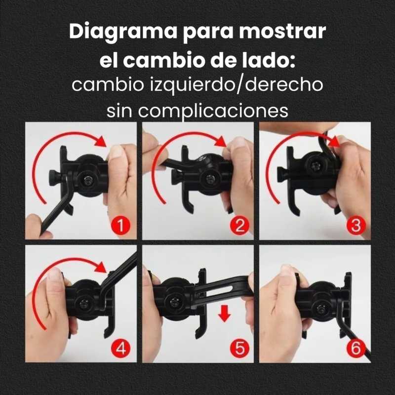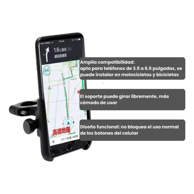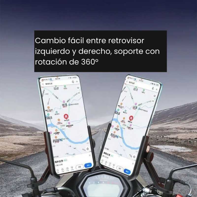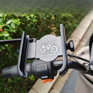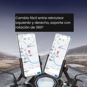 Soporte de celular de aluminio para bicicleta y moto, resistente al agua y apto para teléfonos de 4.7″ a 7.2″. Diseño seguro con giro 360°, carcasa protectora y montaje rápido en manillar o retrovisor. Ideal para negocios que buscan un producto durable y de alta demanda para ciclistas y motociclistas.