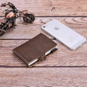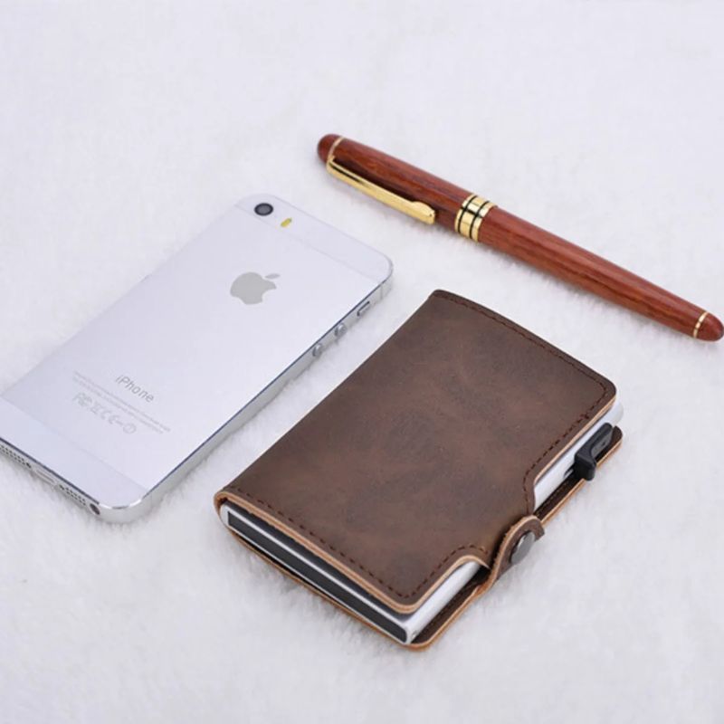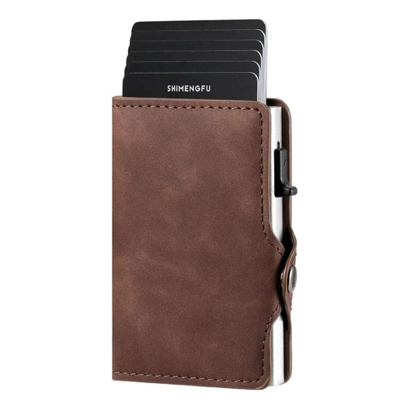 Protegé tus tarjetas con estilo con este tarjetero RFID de cuero sintético, diseñado con expulsor automático y capacidad inteligente. Compacto, liviano y seguro: llevá todo lo esencial sin abultar tus bolsillos.