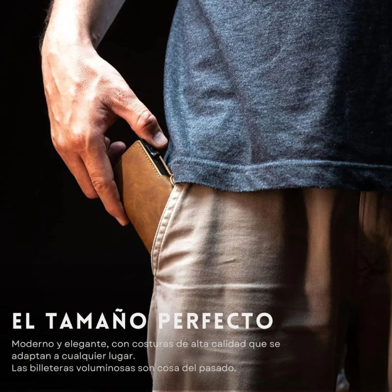Fabricado en cuero sintético de alta durabilidad con estructura reforzada. Su apariencia premium, liviana y minimalista lo convierte en el accesorio perfecto para llevar en el bolsillo sin abultar.