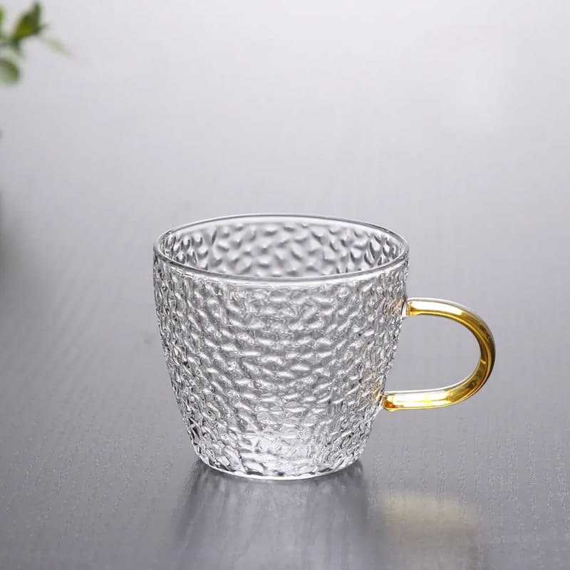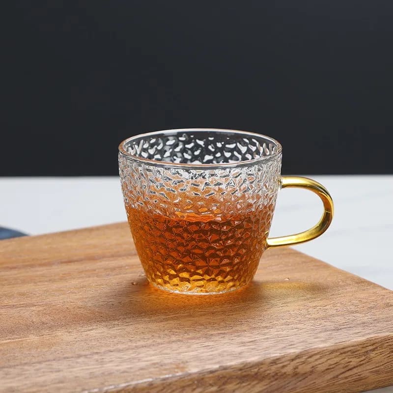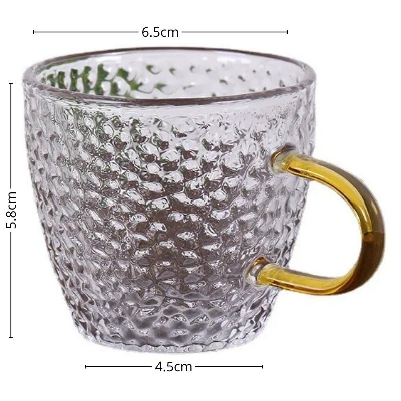 Con sus 6.5 × 4.5 × 5.8 cm y capacidad de 100 ml, esta taza de vidrio borosilicato combina resistencia, ligereza y estilo. Perfecta para disfrutar tu café o té favorito con un toque sofisticado