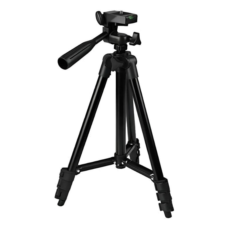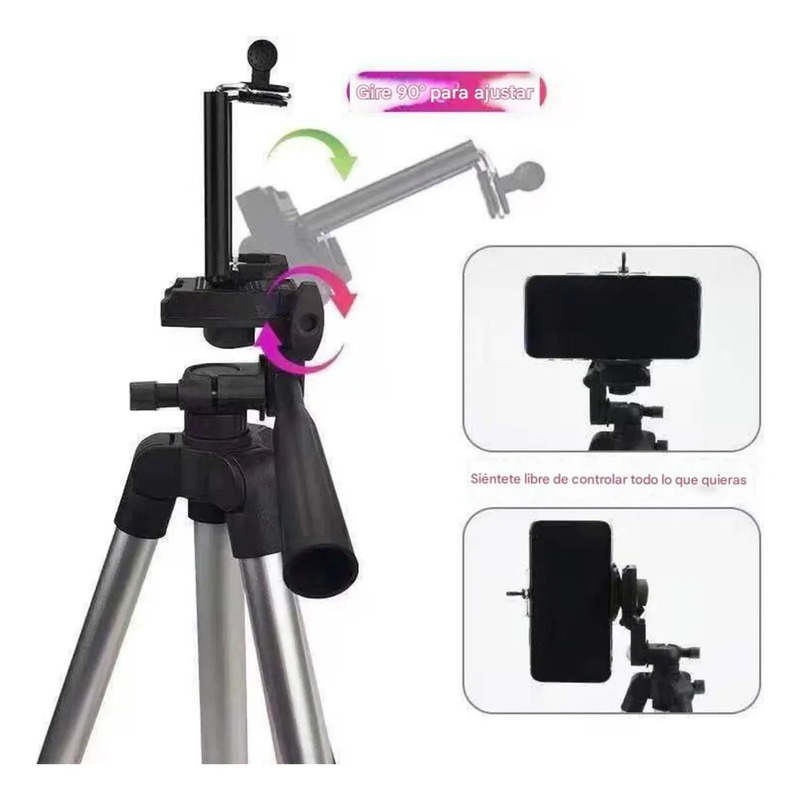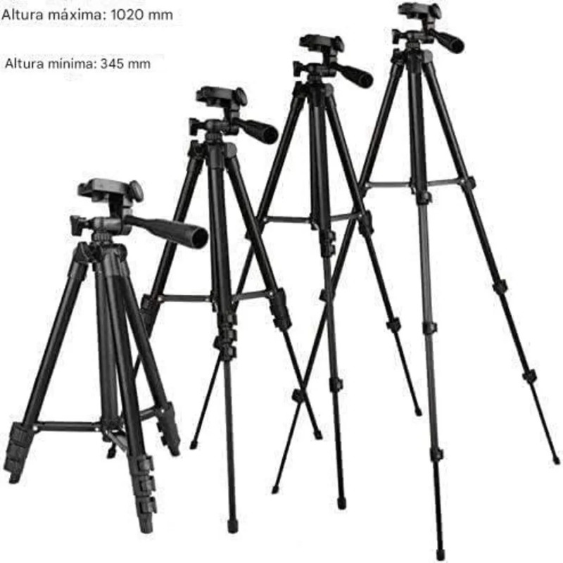 Desde 34,5 cm hasta 102 cm, con patas telescópicas y eje central extensible que brindan estabilidad y flexibilidad en todo momento.